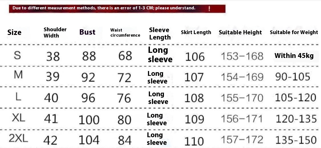 1. Asian sizes are 1 to 2 sizes smaller than European and American people. Choose the larger size if your size between two sizes. Please allow 2-3cm differences due to manual measurement. 2. Please check the size chart carefully before you buy the item, if you don't know how to choose size, please contact our customer service. 3.As you know, the different computers display colors differently, the color of the actual item may vary slightly from the following images.