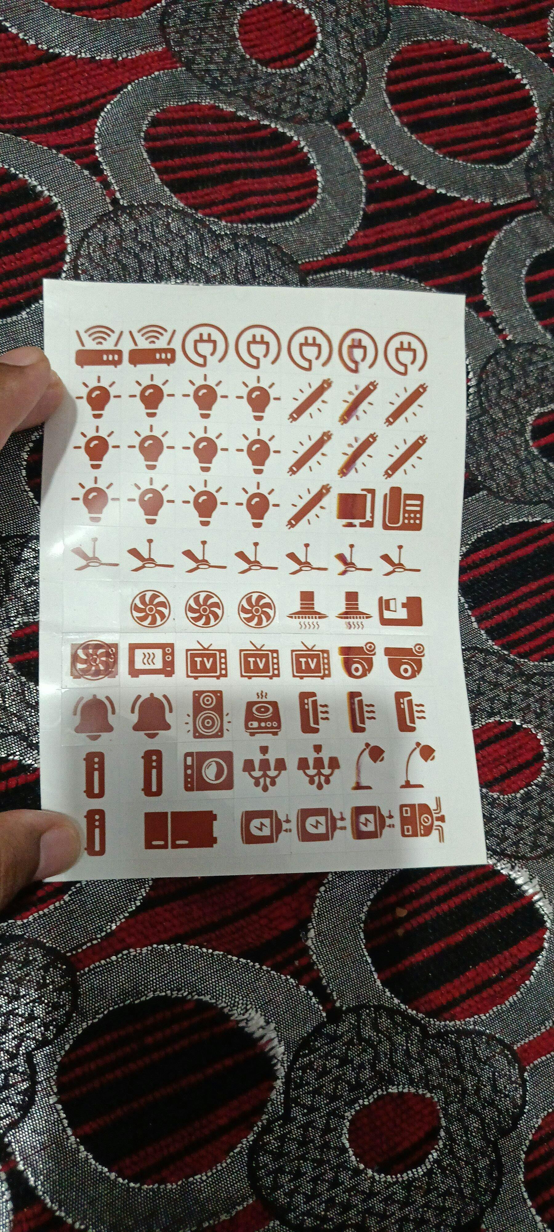 Functional Icons: Includes clear symbols for fans, lights, AC, geyser, doorbell, and more.