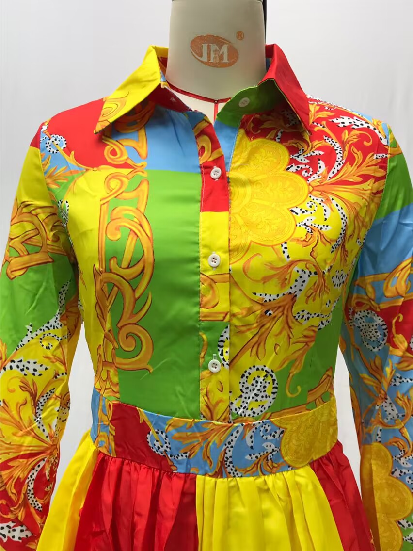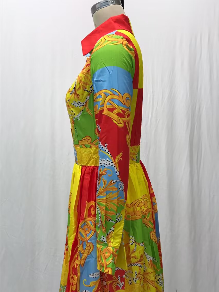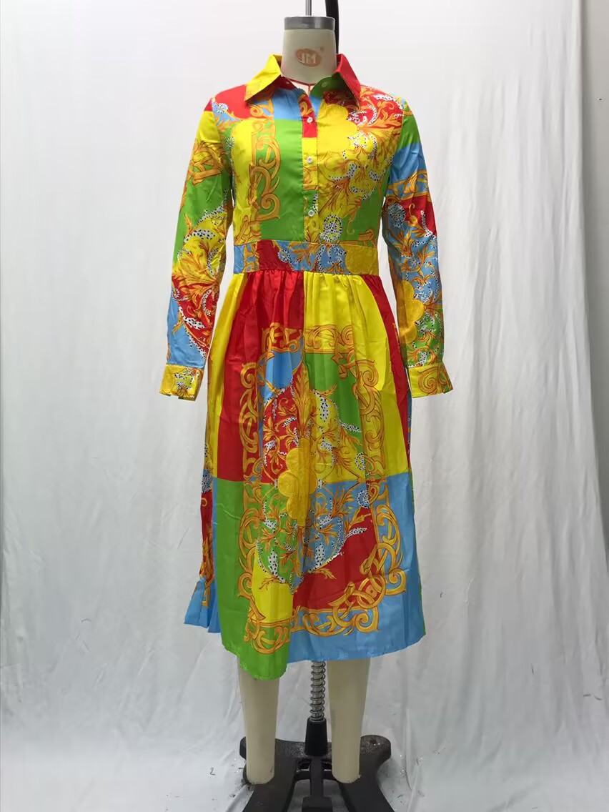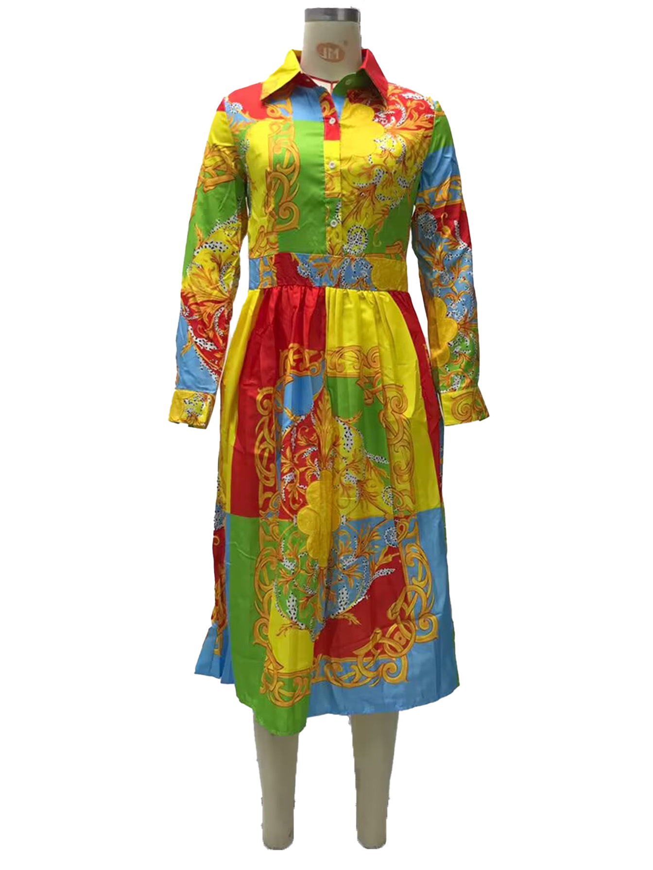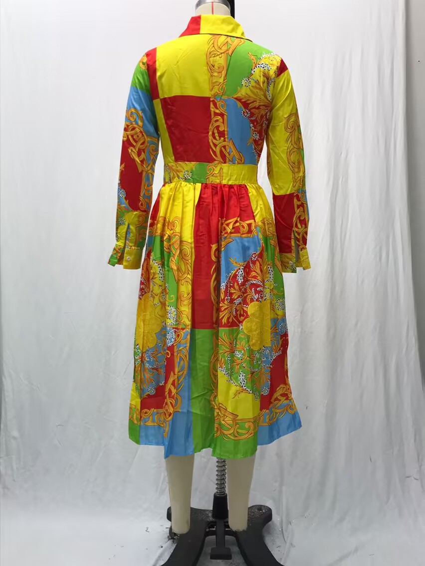 Lapel Long Sleeve Slim Fit Plus Size Dress For Women