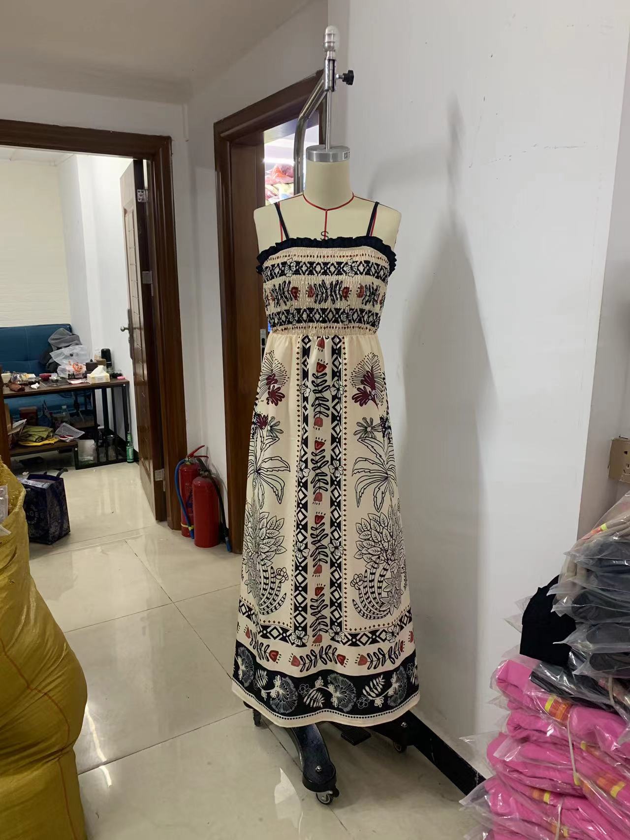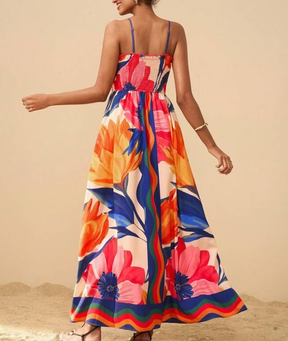 Printed Elegant Graceful Smocking Waist Slimming Sleeveless Dress Women
